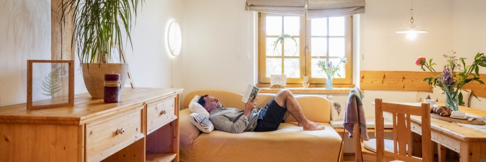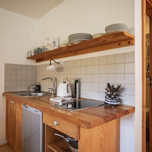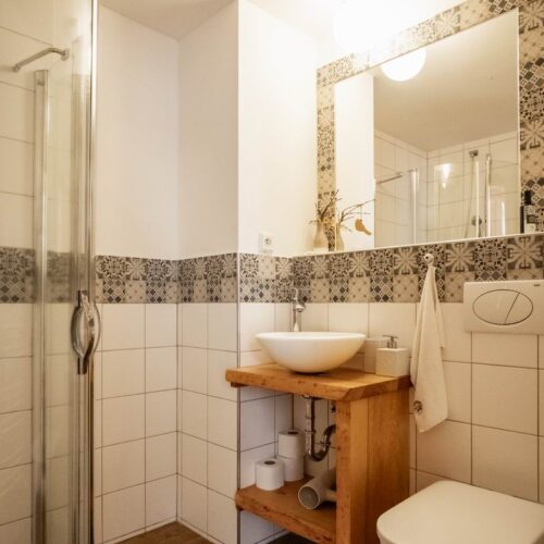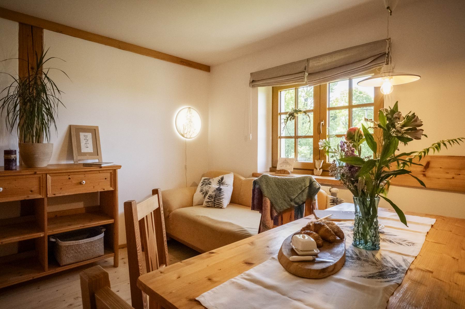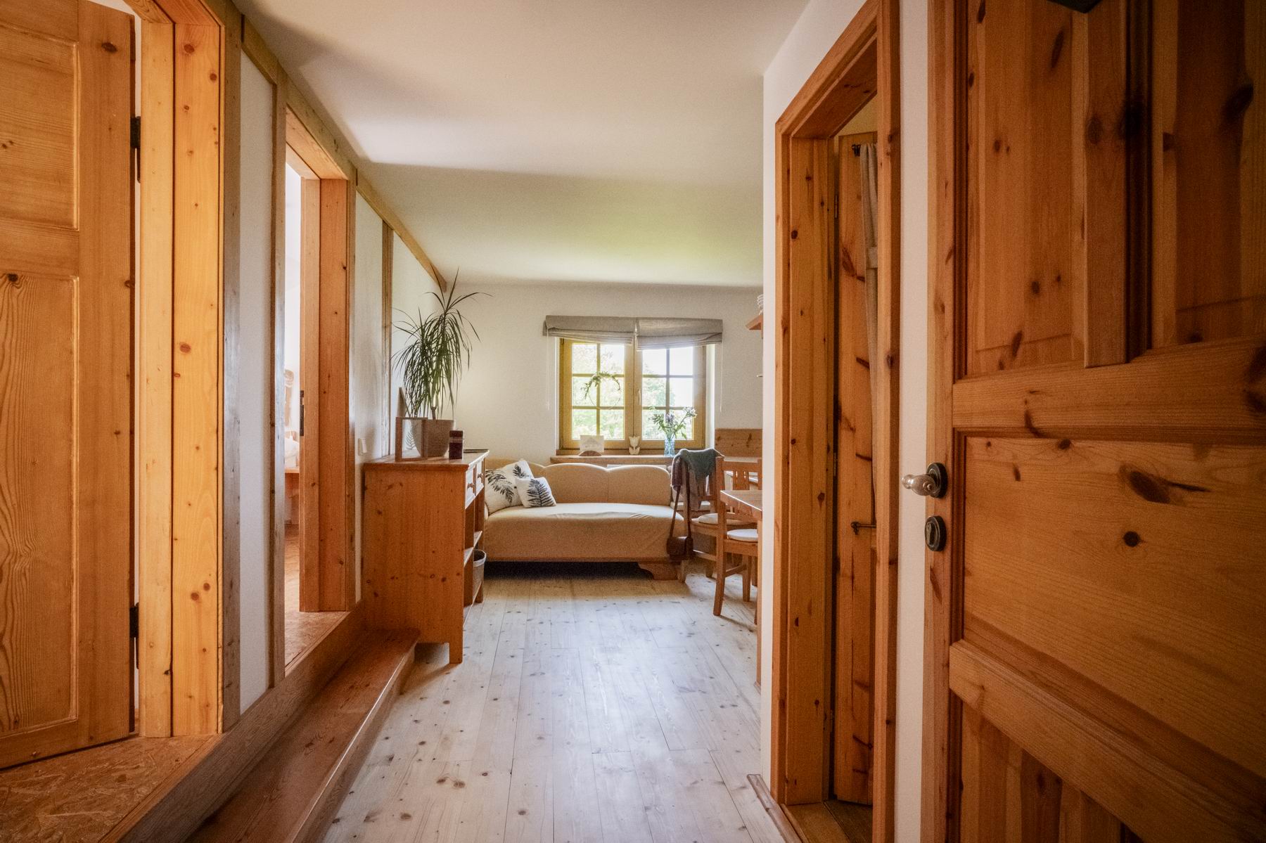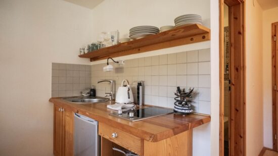 Stay comfortably in our largest apartment, which has two separate bedrooms with sloping ceilings, each with a double bed and one single bed (a total of 6 beds), a skylight with a view of the sky and an Indian dream catcher for your pleasant dreaming .. In the spacious living area with an equipped kitchenette you can sit at a large table or chair, put anything in a spacious chest of drawers. The separate bathroom has a shower, toilet. Private family wellness.
